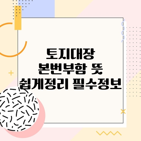 토지대장 본번부함 뜻 쉽게정리 필수정보