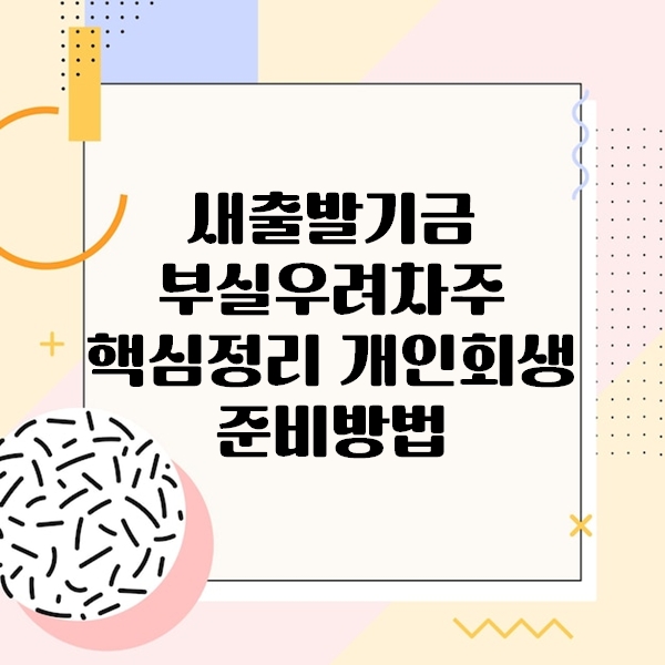 새출발기금 부실우려차주 핵심정리 개인회생 준비방법 Q. 새출발기금 부실우려차주로 신청하면 부실차주로 바뀌는 경우가 실제로 있나요? 그리고 부실우려차주로 거치기간 1년을 사용하다 개인회생으로 넘어가도 괜찮을까요? A. 부실우려차주는 아직 연체 전인 경우 신청하는 유형이며, 심사 과정에서 실제 연체 위험이 명확해지면 부실차주로 조정될 수 있어요. 이는 불이익이 아니라 상황에 맞는 조정 단계가 자동 반영되는 것에 가깝습니다. 또한 부실우려차주로 1년 거치 … 더 읽기